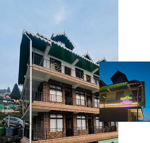 Hilltopia, Parmaguri, a new unit of Ashoka Hospitality, is a new attraction on the misty heights of the Eastern Himalayas. The entire Kanchenjunga range can be viewed from the resort along with other snow-capped titans in the distance. At dawn and dusk, the mountains bathed in gold present an unforgettable sight. Surrounded by slopes of silver fir, hemlock, and magnolia, Hilltopia stands menacing. In spring, though, the sparkle of rhododendrons lights up the region.